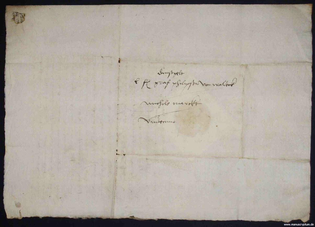 Philipp II. von Waldeck-Eisenberg, Sohn des Wolrad I. von Waldeck und der Barbara von Wertheim, war ursprünglich für die geistliche Laufbahn bestimmt, weshalb er eine den durchschnittlichen adligen Laien jener Zeit deutlich überlegene Bildung empfing. Nach dem frühen Tod seines älteren Bruders Philipp I. musste er jedoch, zur Sicherung der Familiennachfolge, in den weltlichen Stand übertreten und ehelichte 1478 Katharine von Solm-Lich, mit der er u.a. seinen Nachfolger, Philipp III., und Franz, späteren Bischof von Osnabrück und Münster zeugte. Unter Philipps Herrschaft kam es in Waldeck und der Grafschaft Ravensberg, die Philipp als Statthalter für den Herzog von Jülich-Berg regierte, zu bedeutenden Entwicklungen des Bergbaus; so war 1499 im Eisenberg eine große Goldader entdeckt worden und ab 1505 begann Philipp mit der Errichtung von Bergwerken in Ravensberg und Sparrenberg. Berühmt ist Philipp II. auch als Gefangener der schillerndsten Raubritterpersönlichkeit jener Zeit, Götz von Berlichingen (1480-1562). Götz, der von einer Fehde in die nächste zog, bekriegte damals den Mainzer Erzbischof Albrecht von Brandenburg. Als sich Götz im Rahmen der Fehdehandlungen 1516 in Padberg befand, konnte er den nichtsahnenden Grafen Philipp, der als Rat im Dient von Kurmainz stand, überwältigen und nach Franken entführen. Erst gegen die Entrichtung einer sehr stattlichen Summe von gut 9000 Dukaten kam der Waldecker wieder frei. Da Philipp II. von Waldeck einen nicht unwichtigen Machtfaktor im Rheinland repräsentierte, wurde seine Loyalität seitens der Großmächte durch Ratsstellen erkauft, die für Philipp II. einträgliche Nebeneinnahmen ohne größere tatsächliche Verpflichtungen bedeuteten. Neben Kurmainz diente er so auch dem Kölner Erzbischof und dem Landgrafen von Hessen. Dass er, wie die vorliegende Urkunde belegt, auch im Dienst der Herzöge von Sachsen stand, kann sich nur dadurch erklären, dass diese eine, ihnen 1485 und 1495 vom Kaiser zugesicherte, Anwartschaft auf das Herzogtum Jülich-Berg hatten. Graf Philipp II. von Waldeck war der Neffe des letzten Herzogs von Jülich und Berg und damit für dessen potentielle Nachfolger aus Sachsen eine Schlüsselfigur ihrer rheinischen Machtpolitik. Nachdem jedoch Herzog Wilhelm IV. im September 1511 verstorben war, belehnte Kaiser Maximilian, entgegen seinen vorherigen Versprechungen, nicht die Sachsenherzöge, sondern Johann III. von Kleve mit dem Herzogtum Jülich und Berg. Mit dem Zerfall der sächsischen Aspirationen im Rheinland dürfte auch das sächsische Dienstverhältnis des Waldeckers geendet haben, der für die sächsischen Herzöge nunmehr sicherlich nicht mehr sonderlich interessant gewesen war. Die vorliegende Urkunde markiert also die wohl letzte Auszahlung eines scheidenden Dienstmannes, bezeugt mithin das vorläufige Ende der sächsischen Herrschaftspolitik in Jülich-Berg und wohl auch der sächsisch-waldeckischen Verbindung.