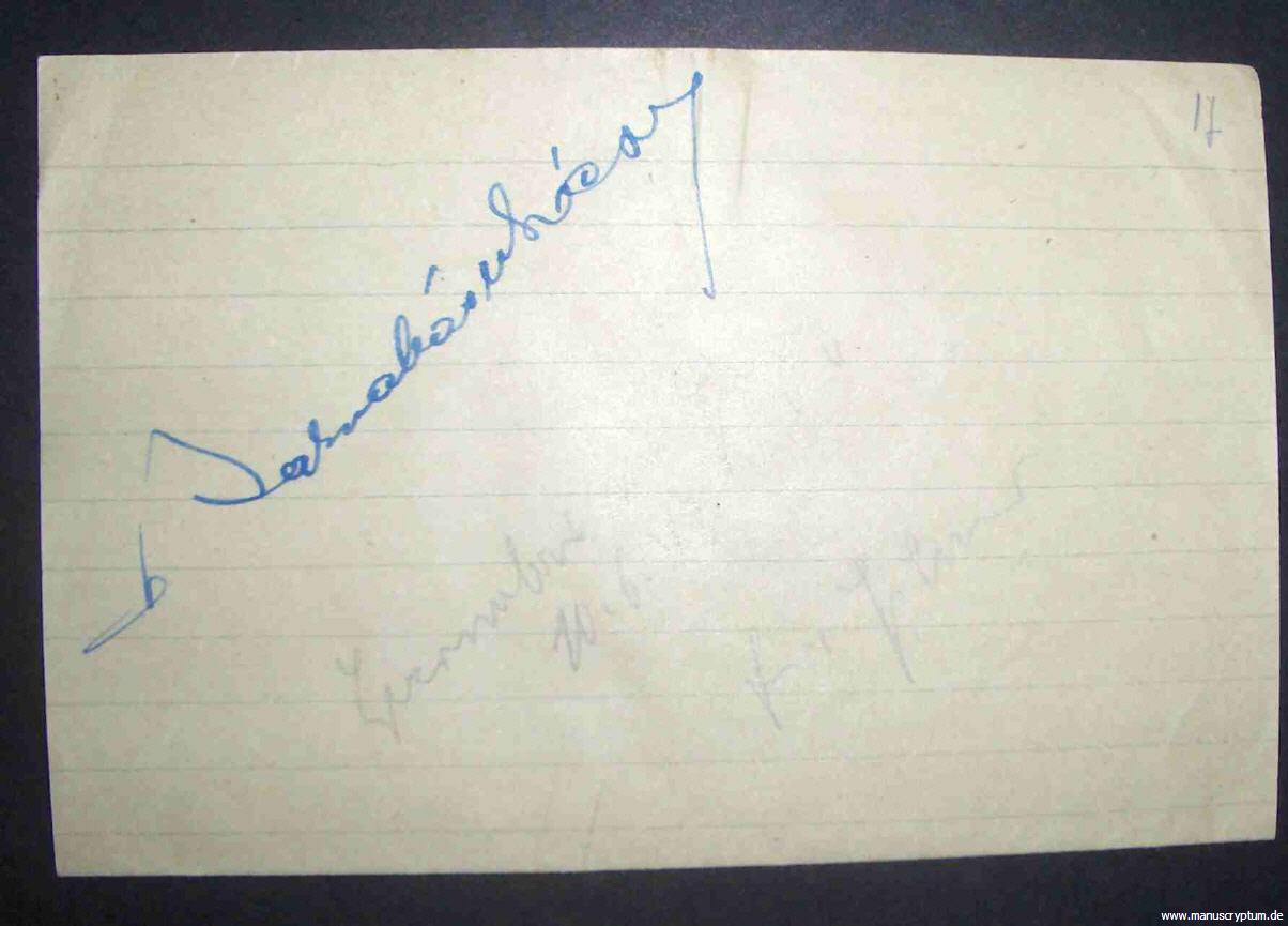Barnabás von Géczy, ungarischer Violinist und Orchesterleiter (1897-1971), eigenh. Namenszug, o. O., 10. Juni 1943. Auf Notizzettel, ca. 19 × 14,5 cm. - € 30.